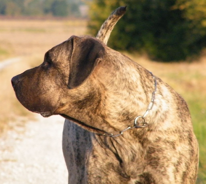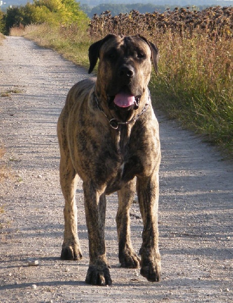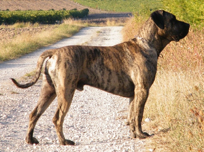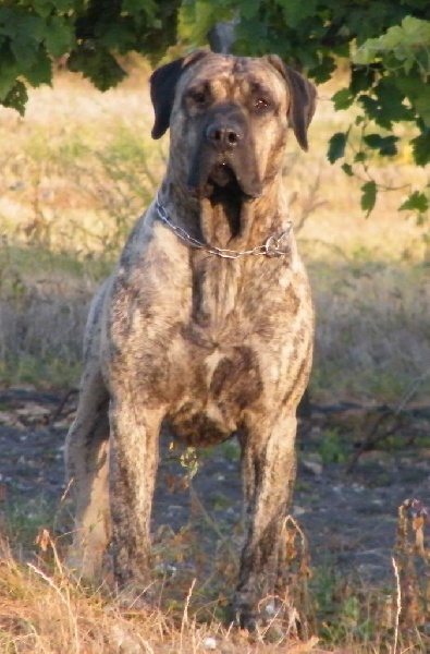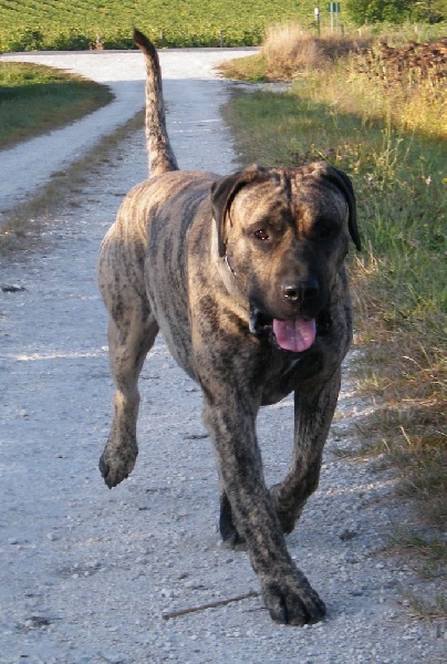 Bonnes proportions et bien musclé. Exc. caractère et tempérament. Tête bien typée assez massive. Dentition correcte.Oreilles bien attachées. Encolure massive. Petits fanons. Dos bien ferme. Exc. Avant et Arrière main. Exc. épaules, croupe, pieds. Cuisse bien musclée. mouvement typique de la race.
